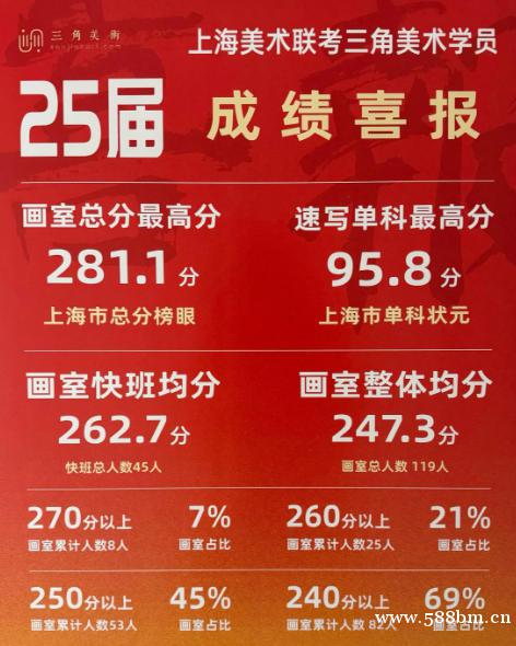 三角美术近3年上海美术联考状元学员成绩: